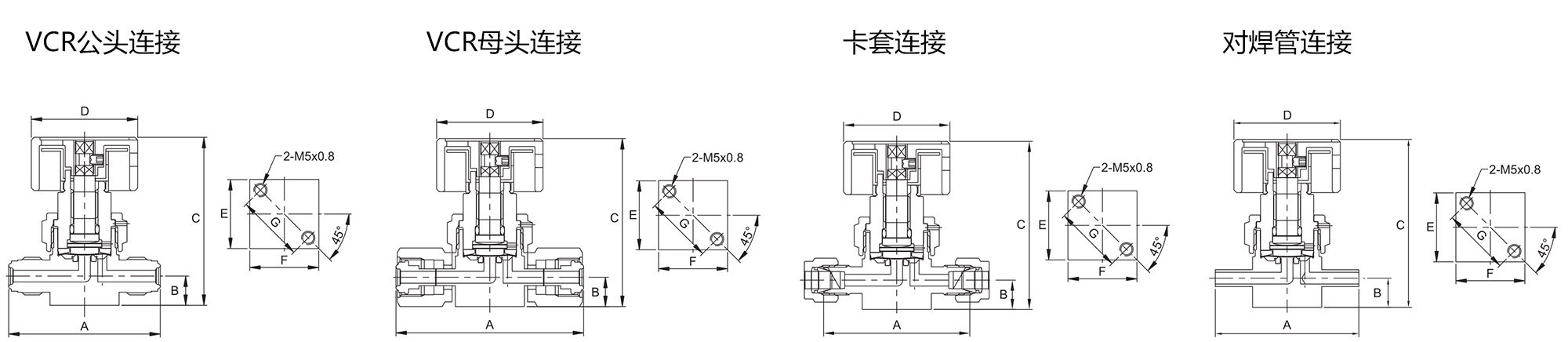 连接选择:VCR公头、VCR母头、卡套接头、对焊管接头