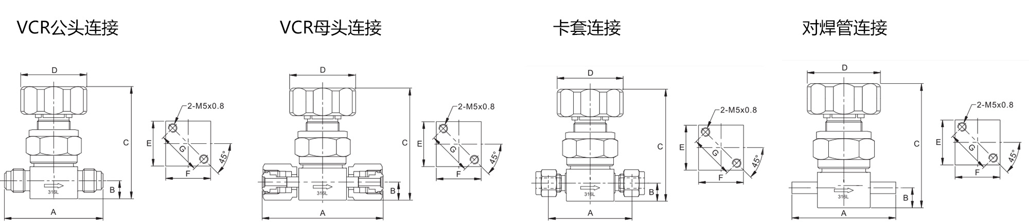 连接选择:VCR公头、VCR母头、卡套接头、对焊管接头