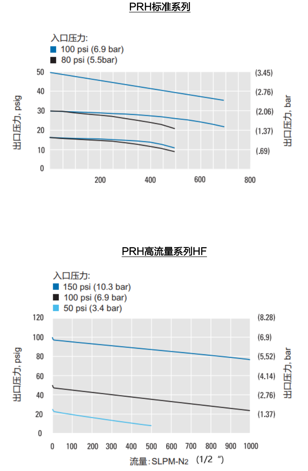 | PRH10004M/F-HF | 2-100psi (0.14-7.0bar) | 1/4"VCR公/母头 | 55 | 102/94 | |