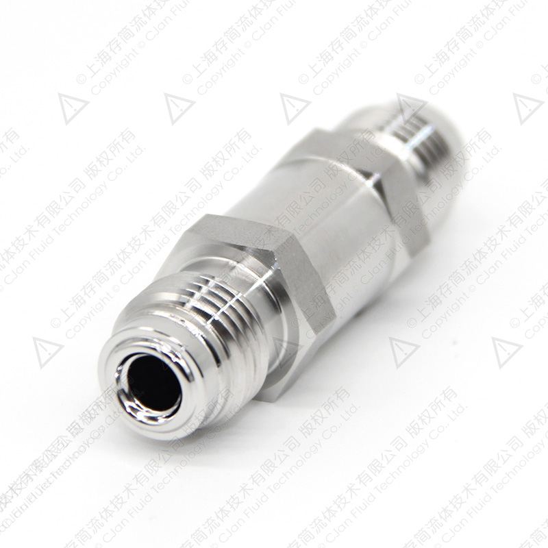 CVS系列不锈钢单向阀固定开启压力,多种开启压力可选,阀体采用高品质SS316L材质,内表面可选择EP电解抛光,高洁净处理,脱脂+精密清洗,出厂前每个都会进行单独的氦质谱泄漏测试。