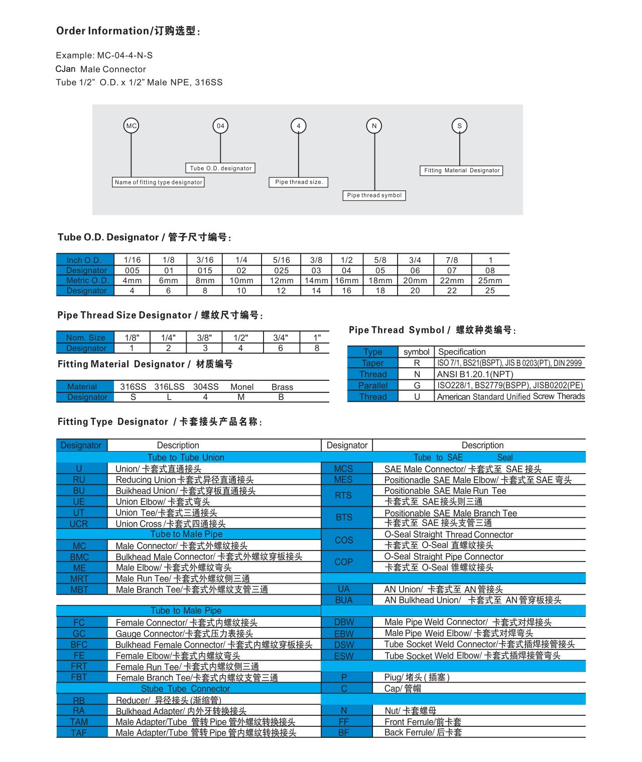 不锈钢卡套式管接头系列