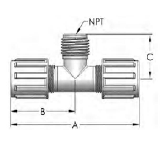 | 编码 | 管外径1 | 管外径2 | 螺纹NPT | 通径 | A | B | C |