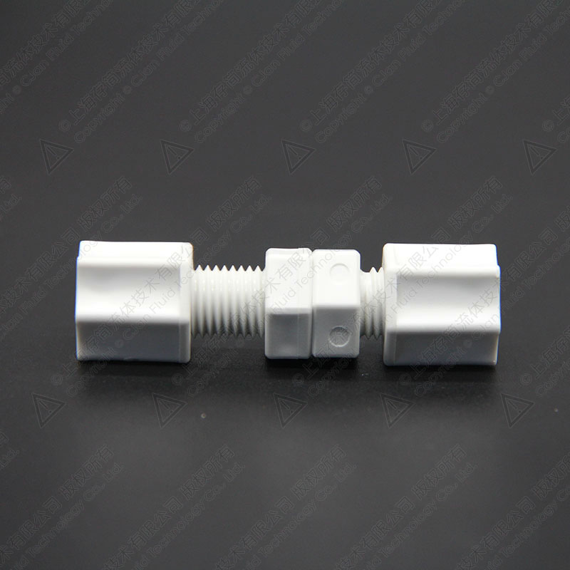 接口形式:双卡套紧迫式(其中卡套为PVDF材质,套筒为PP材质)